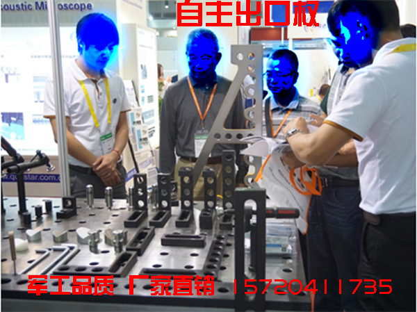 所有模塊加工精度均較高,工作平臺上任意兩個孔的公差在±0.1mm以內(nèi),完全可以滿足焊接加工的需要。在裝配或焊接過程中,使用定位塊、連接塊、夾緊器和支撐塊,能夠?qū)ぜ_定位,需要焊接的工件可以被穩(wěn)定地固定在各個定位點或定位面上。如果工件本身的幾何尺寸不準(zhǔn)確,也可以很快被檢測出來,在初加工工序中便被消除。
